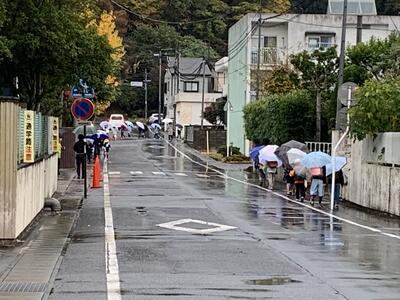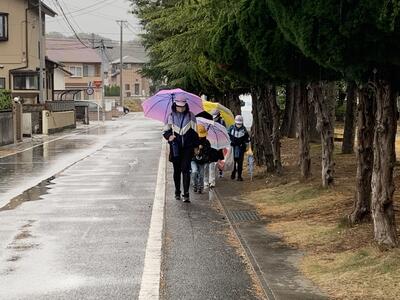 みなさんおはようございます。今朝は冷たい雨です。子どもたちは、傘をさしての登校になりました。こういう日にも見守り隊のみなさまありがとうございます。