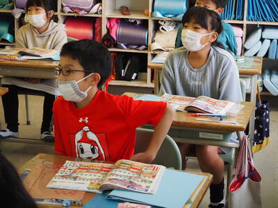 国語の時間に、先生が「せかい一の話」を範読してくれました。子どもたちは「しん」と聞き入っていました。