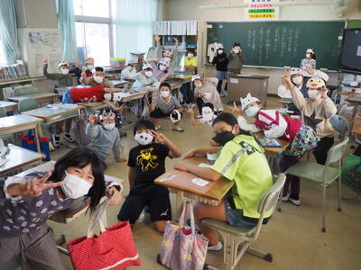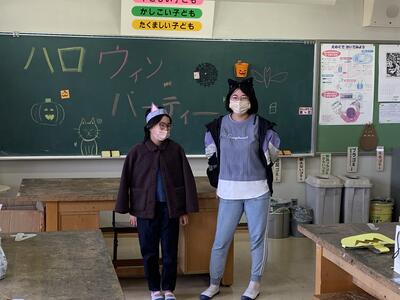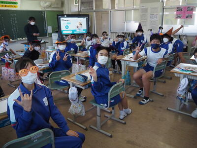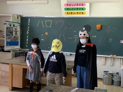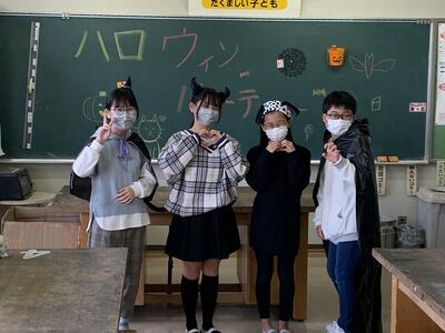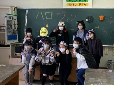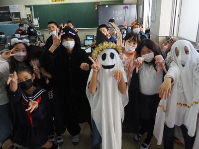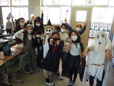 今日はハロウィンです。仮装をしたりハロウィンパーティーをしたりするクラスもありました。