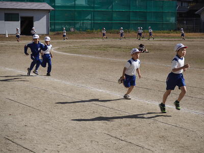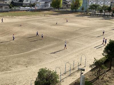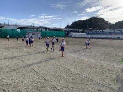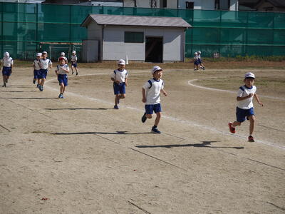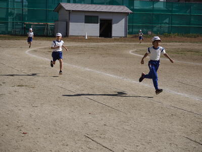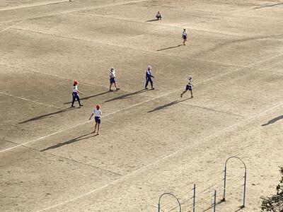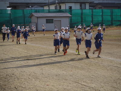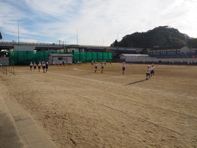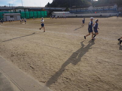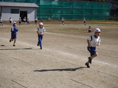 4校時の体育は持久走でした。急に早くなったり遅くなったりしないよう、同じペースで走るように気をつけて練習しました。
