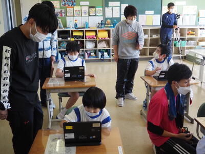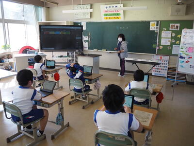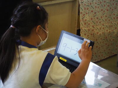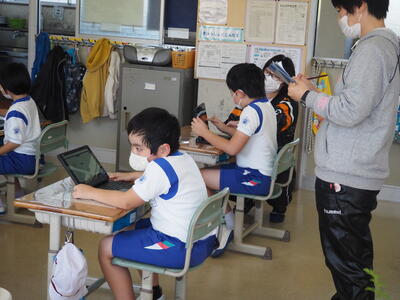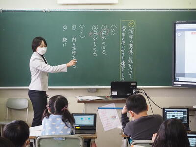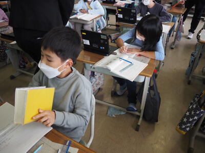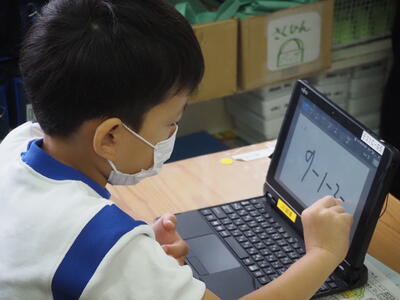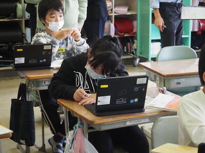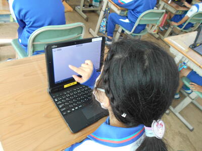 国語の授業で漢字の使い分けについて学習しました。漢字は同じ読み方も前後の言葉を読んで使い分けしなければなりません。そのことを理解した子どもたちは、同じ読みをする漢字を使って短文を作り、漢字の部分を□□にして問題にしてお互いに解き合いました。コンピューターを使うと限られた時間でもたくさんの友達の考えに触れることができ、さらに先生からの指導を受けたり話し合ったりすることもできる良さがあります。ちなみ今回の授業では、子どもたちはコンピューターと合わせて国語辞典や漢字辞典も使って学習していました。デジタルとアナログのベストミックスを目指しています。