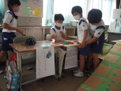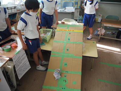 生活科「おもちゃまつり」の準備をしていました。工夫して作ったおもちゃはどれも楽しく遊べそうです。