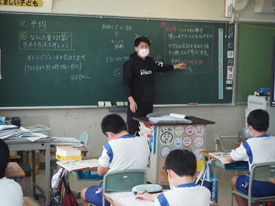算数の授業でした。「平均」の学習です。みんなで声を出し合って、みんなで授業を作り上げていました。