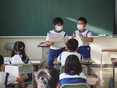 児童会図書委員会では、「読書まつり」の紹介をしました。4・5・6年生の図書委員会の児童が低学年教室を訪れてお話ししてくれました。ありがとう。