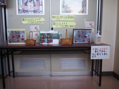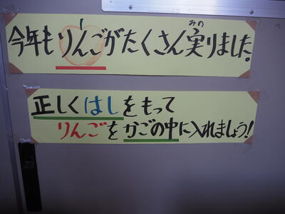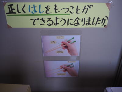 保健室の前では、「はしの使い方」の練習コーナーが設置されました。