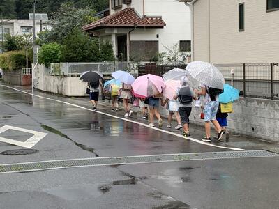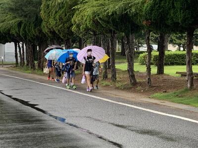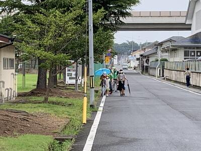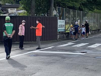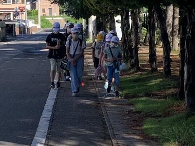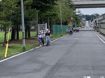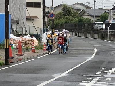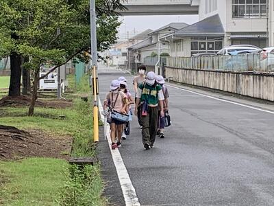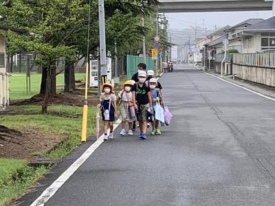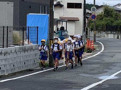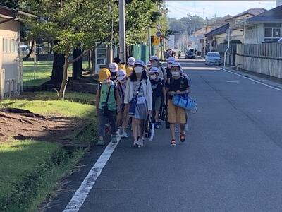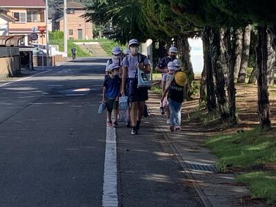 ずいぶん過ごしやすい朝になりました。班長さんを先頭に、安全に登校することができました。学期始めということもあり、さらに今日は月曜日、荷物が多いようです。