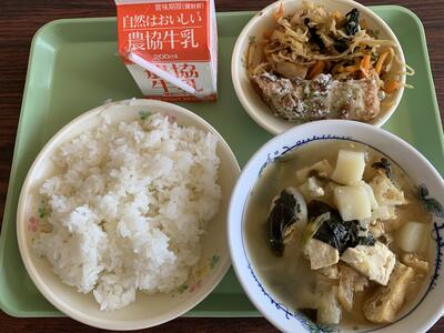 ごはん、みそ汁、切り干し大根、ちくわのいそべ揚げ、牛乳でした。和食ですね。ごちそうさまでした。