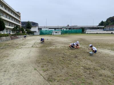 登校後は着替えを済ませて校庭の草むしりです。進んで働こうとする態度、こちらも素晴らしいですね。