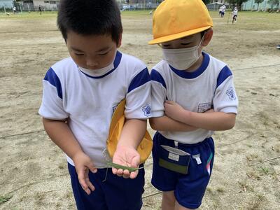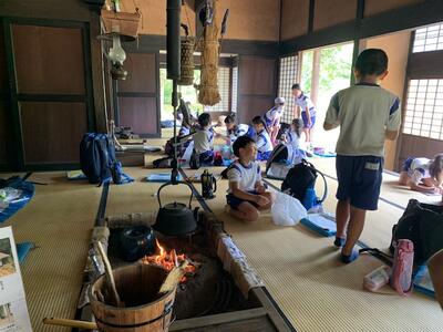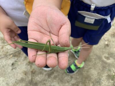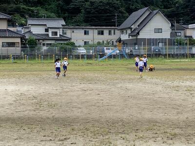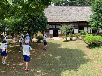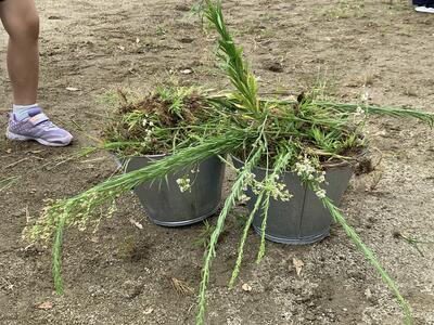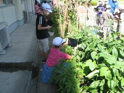 校庭ではドッジボールをしたり虫採りをしたりして子どもたちが遊んでいました。教室に入る前には草むしりをして、集まったものを56年生が草置き場まで運んでくれました。