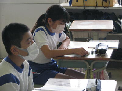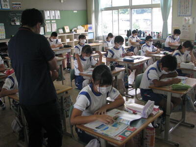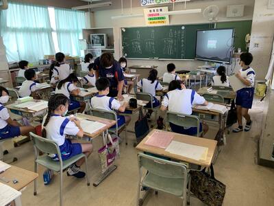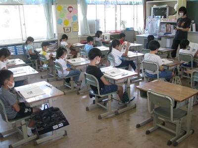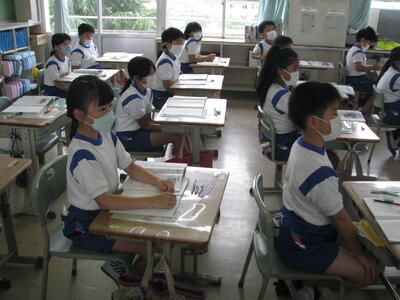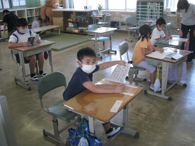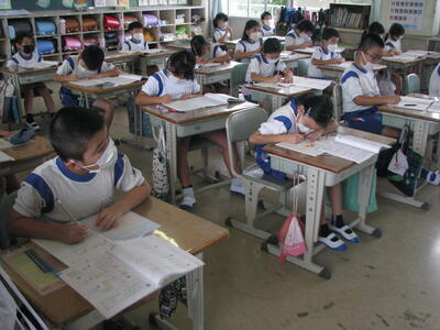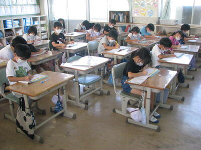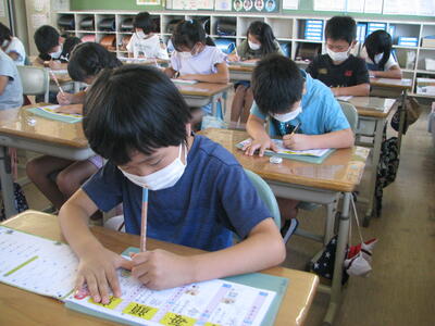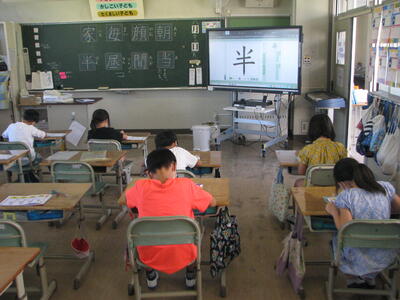 新出漢字の練習をしていました。先生が見て回っていますが、ドリルの書いてある書き順を自分で確かめながら書ける人も多くなったようです。