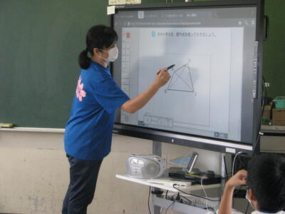 6年生が拡大図と縮図について学習していました。それを聞いていた3年生も分かることがあるようで、先生の問いかけに反応している子もいました。