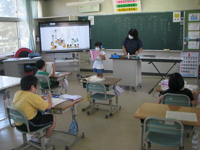 夏休みの思い出を発表していました。みんな聞く人も話す人もじょうずでした。
