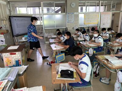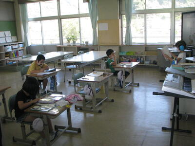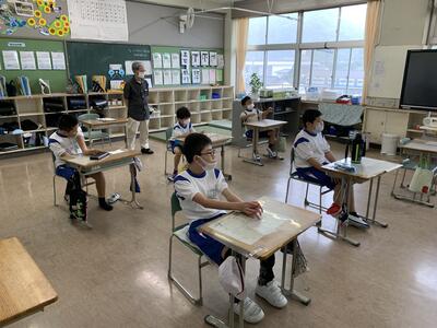 子供たちが登校してから教室へ足を運んでみると。もう活動が始まっていました。