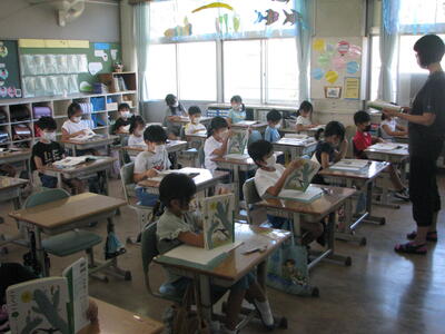 国語「どうぶつ園のじゅうい」を先生が範読してくれました。
