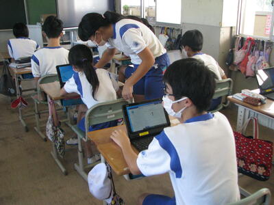 Teamsの使い方を練習していました。教え合いながら学習を進めていました。私も少し参加して、楽しいひとときでした。