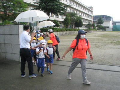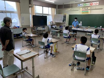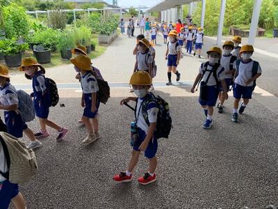 みなさんおはようございます。今朝は1年生から5年生までは運動着で登校です。今日は見学学習に行くからです。楽しみもあってか、一段と元気なあいさつが聞かれました。