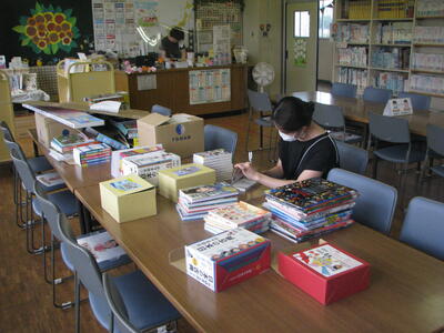 今日は図書ボランティアのみなさんが学校へいらっしゃって、新しく購入した図書の整理や季節の飾りづくりをしてくださいました。貴重なお時間にご協力いただきありがとうございました。