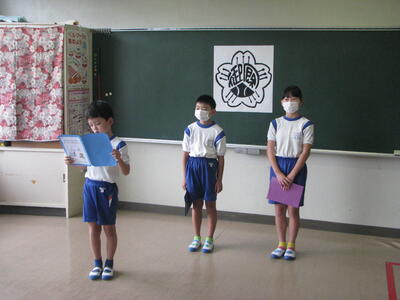 先週(9/5月)の全校朝会で、代表児童が「夏休みの思い出と2学期の目標」を発表しました。全員大変じょうずに発表することができました。