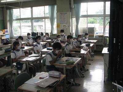 みまや3組では朝の会を行なっていました。背すじを伸ばして、先生の話を聞いていました。