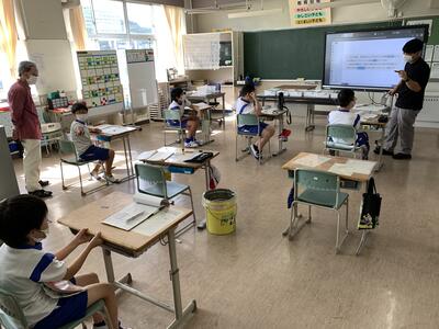 その隣の教室では、初任者研修中でした。先生も勉強しています。