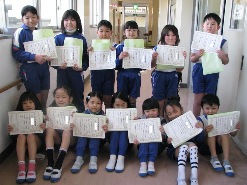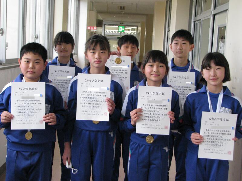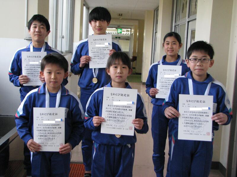縄跳び記録会の表彰を行いました。それぞれ、豪傑揃いです。