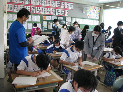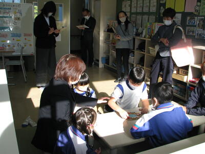 内郷地区の小学校では、お互いの学校の授業を教師が見合う研修を行っています。今回は、御厩小の授業を内郷地区の小学校の先生方に見ていただきました。「自立活動 遊びのルール」の授業で、遊びに混ぜてもらいたいとき、なんと言えばいいか、一緒に遊びたそうな友だちがいたとき、なんと声をかけてあげればよいかなどを学習しました。その時、どんな気持ちになるかなどを考え、自分の気持ちの伝え方や友だちと一緒に仲良く遊ぶことができるために必要なことを学びました。