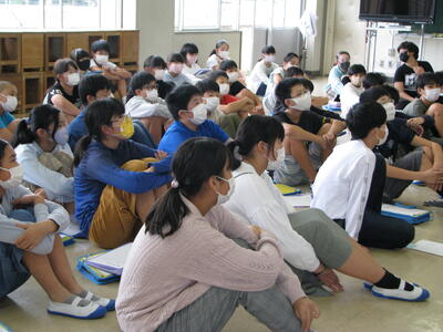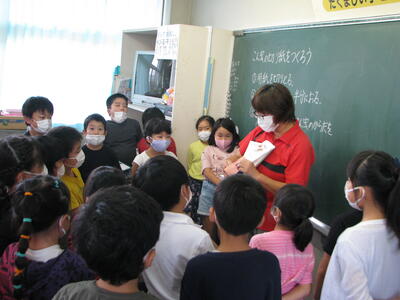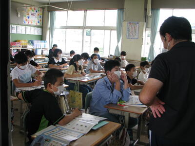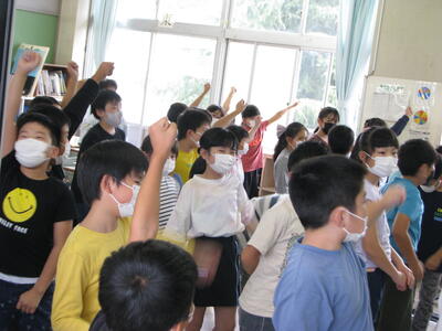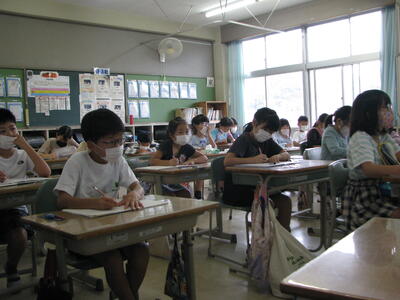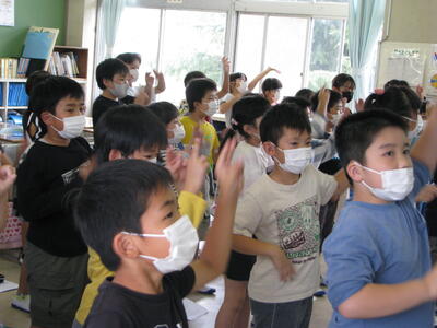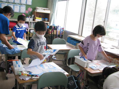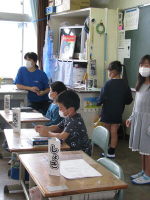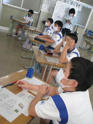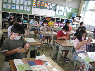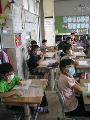 夏休みの思い出を英語で表現する学習をしていました。ヒアリングの力が付いて、英語で話している内容を聞き取ることができる児童が増えています。