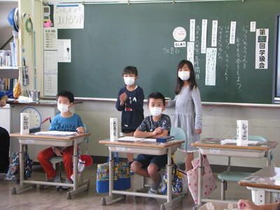 2年生の教室をのぞいてみると、学級会の時間でした。転校生を迎える会を開くための話し合いをしてました。