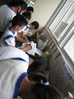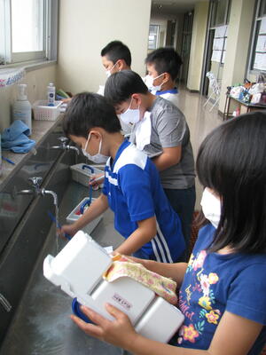 みんなしょうゆに染められたね。後片付けもしっかりできました。