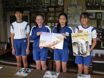 今日は、図書委員会の代表6年生4名に、お昼の放送で絵本の読み聞かせをしてもらいました。年老いた大きなゾウと、おさなくてまだ小さいネズミのお話です。仲良く一緒に暮らす2人に、お別れの時が来ます。でも、心も体も成長したネズミが、ゾウのために一生懸命自分のできることをするお話です。図書委員の4人はとても上手に読んでくれました。御厩小の子供たちのおじいさん、おばあさんは、とても若くて(わたしより若い)、元気いっぱいですが、子供たちが年老いていくとはどういうことか、少しでも分かってくれるといいです。おじいさん、おばあさんを大切にしましょう。