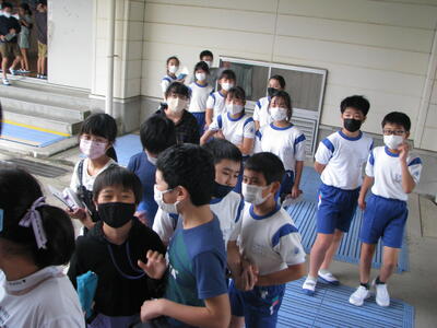 昨年度は新型コロナウイルス感染拡大防止のため、中止とせざるを得なかった学習発表会ですが、今年度はなんとか実施したいと、6年生の児童の力を借りて体育館を学習発表会用に会場作成しました。体育館シートを広げるのが一苦労。とっても重いのです。