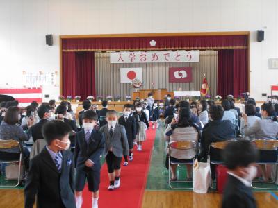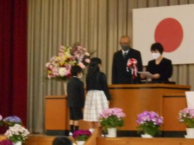 学校では、コロナ対策を行い、来賓はPTA会長のみ、保護者も1家庭2名までとし、感染防止に努めて行われました。