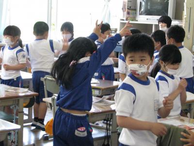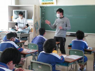 今日は早速5年生の授業から臼井先生の授業が始まりました。臼井先生は4年生には週1回、5・6年生は週2回の授業を行います。