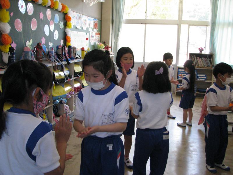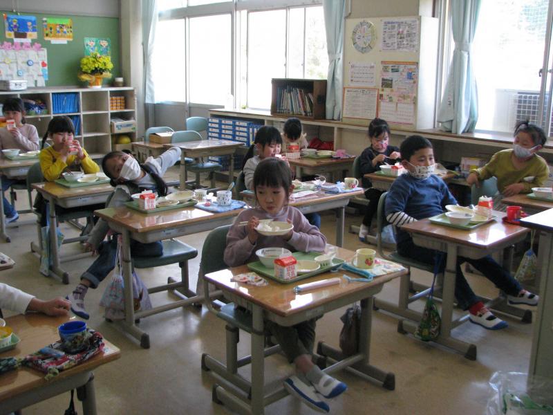 給食の準備も後片付けも、上手にできるようになりました。マスクを外したら、しゃべらないで食べるのも守れています。