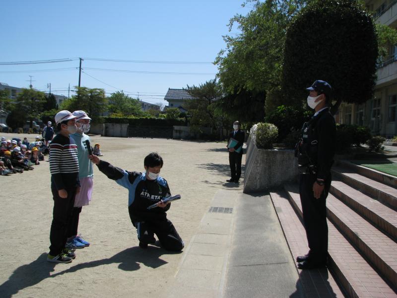 内郷駐在所の巡査部長 中澤さんに来ていただき、家庭の交通安全推進員の委嘱状を6年生の代表に手渡してもらいました。また6年代表児童が交通安全誓いの言葉を述べました。