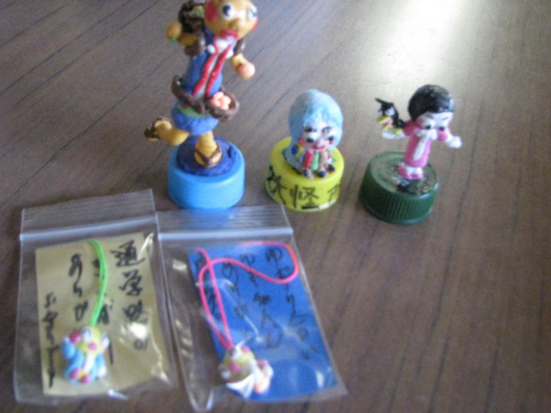 この置物のマスコットは、真ん中がアマビエ、左は、チコちゃんとカラスだそうです。中央玄関にかざっておきます。