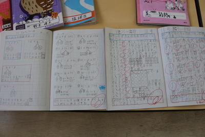 学習したノートをためています。もう1人で何冊もやっています。すごいですね。