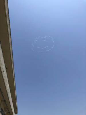 9日(火)12:15頃、御厩小上空にニコニコマークが現れました。教頭先生の撮影です。