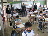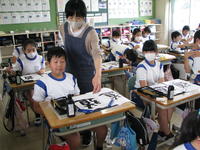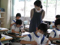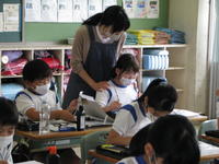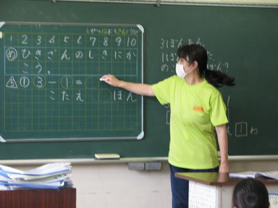 5年2組の担任、鹿島先生が初任者研修を実施している時間に、土屋先生に5年2組の授業をしていただいています。