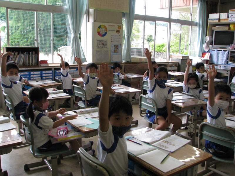 1年1組です。算数の授業。みんなとてもがんばっています。それに、それぞれ児童の顔に、自信が感じられます。