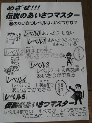 学級では「伝説のあいさつマスター」に取り組んでいるところもあります。すごいですね!