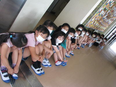 廊下で待ってる2年生もとっても静かでお行儀がいいです。コロナも心配ですが、日頃から健康第一です。
