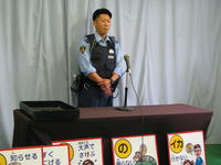 今日は、スクールサポーターのさん当家さん、内郷駐在所 後藤所長と矢浪巡査、いわき中央警察署の生活安全課か父さんをお迎えして、防犯教室が行われました。