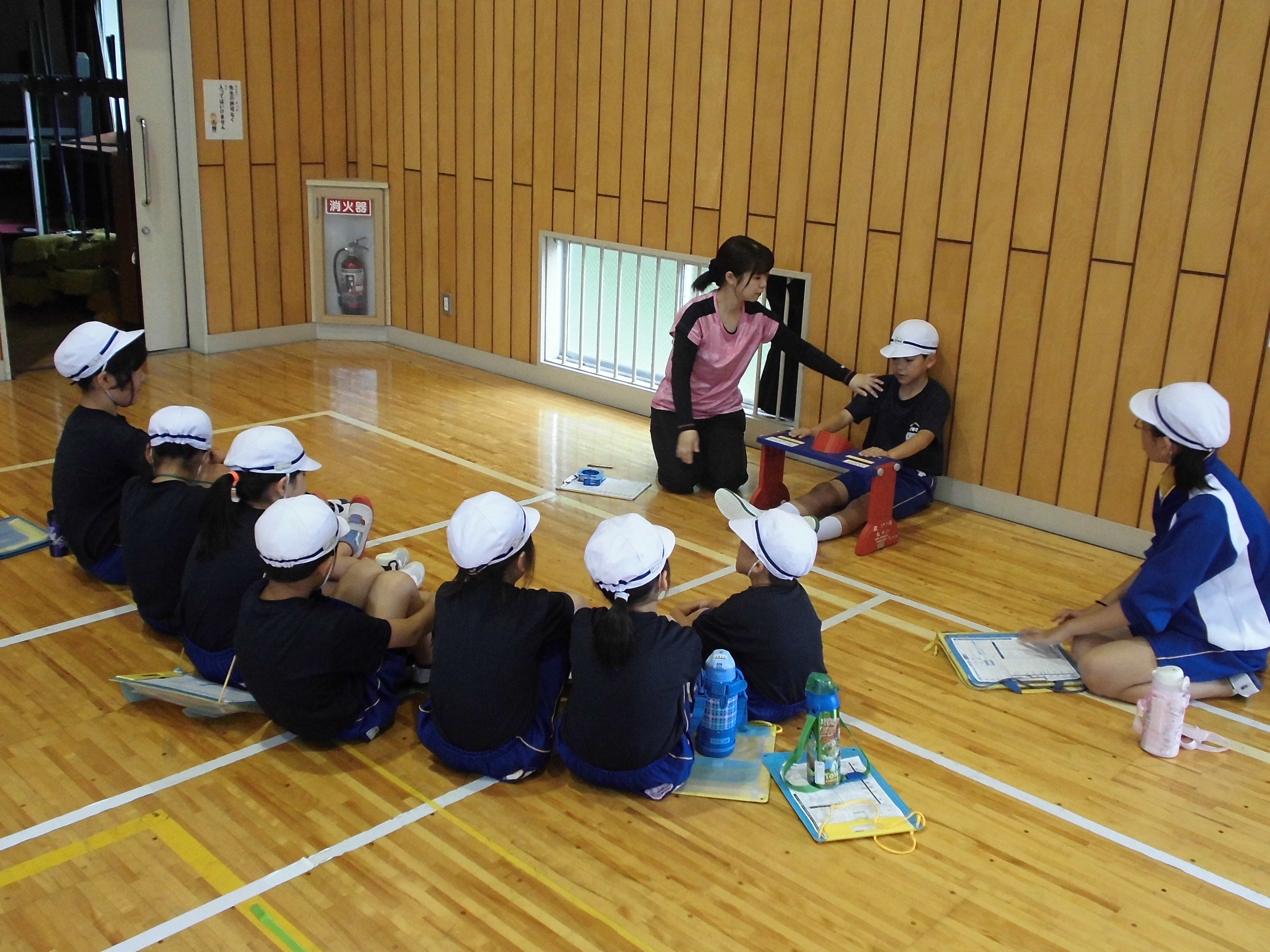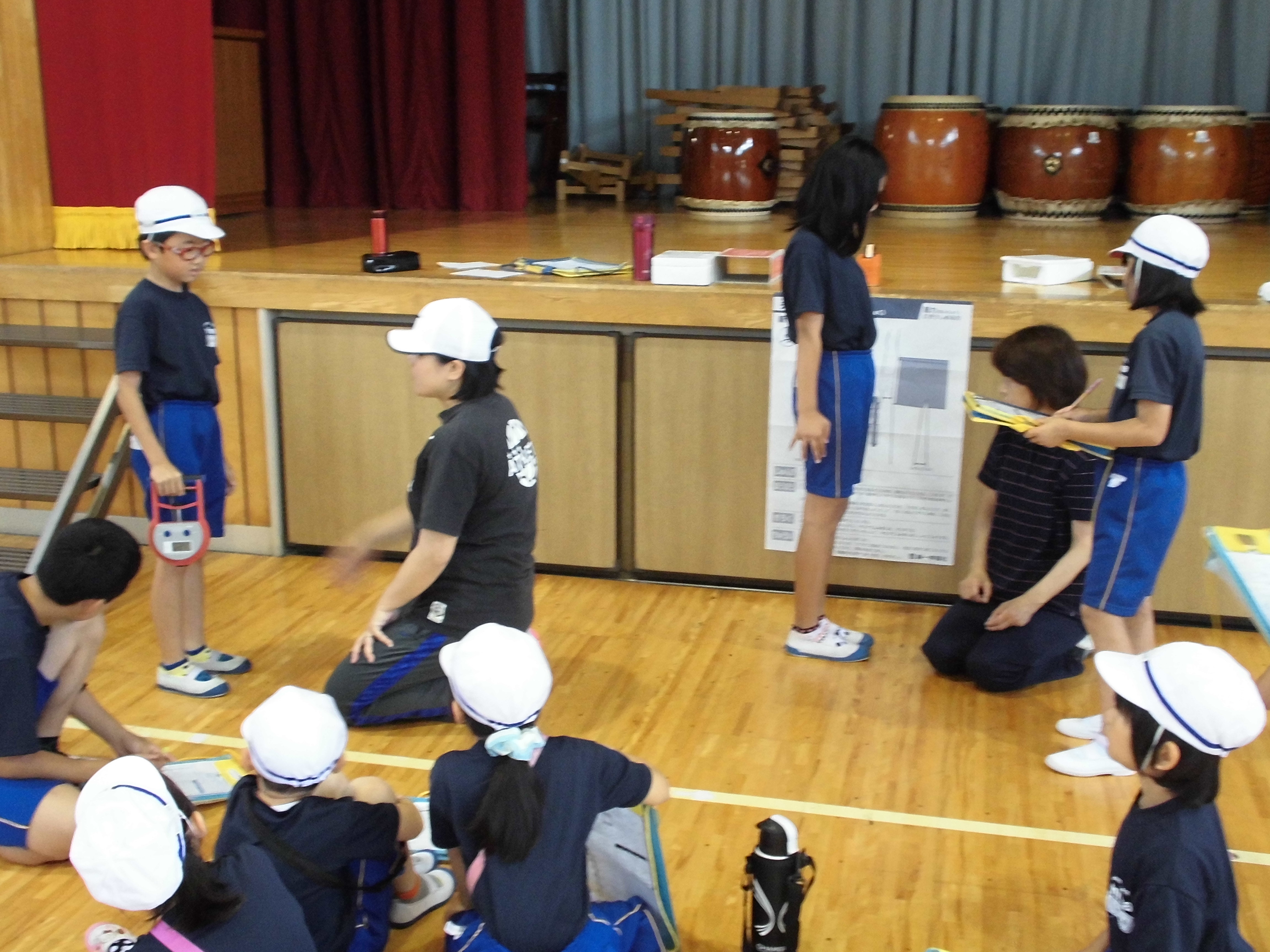 28日(木)、29日(金)にスポーツテストを実施しました。縦割り班ごとに、各種目の測定を行いました。体育館では、上体起こし、握力、長座体前屈、反復横跳びを行い、グラウンドでは、立ち幅跳びとボール投げを行いました。初めて体験する1年生も、担当の先生や上級生に教えてもらいながら一生懸命取り組んでいました。