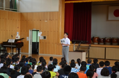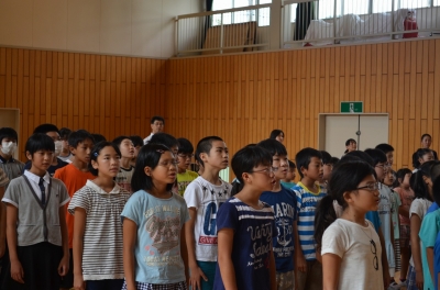 第1学期終業式が行われました。式では、校長先生から、教育目標「夢に向かって学び続ける三和っ子」についてお話がありました。どの子も、真剣な態度で式に参加することができ、大変立派でした。けがや事故のない、より思い出となる夏休みにしてください。