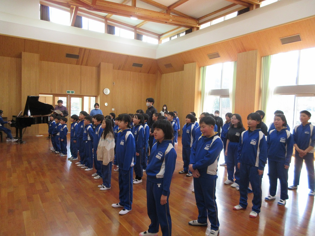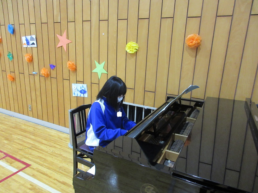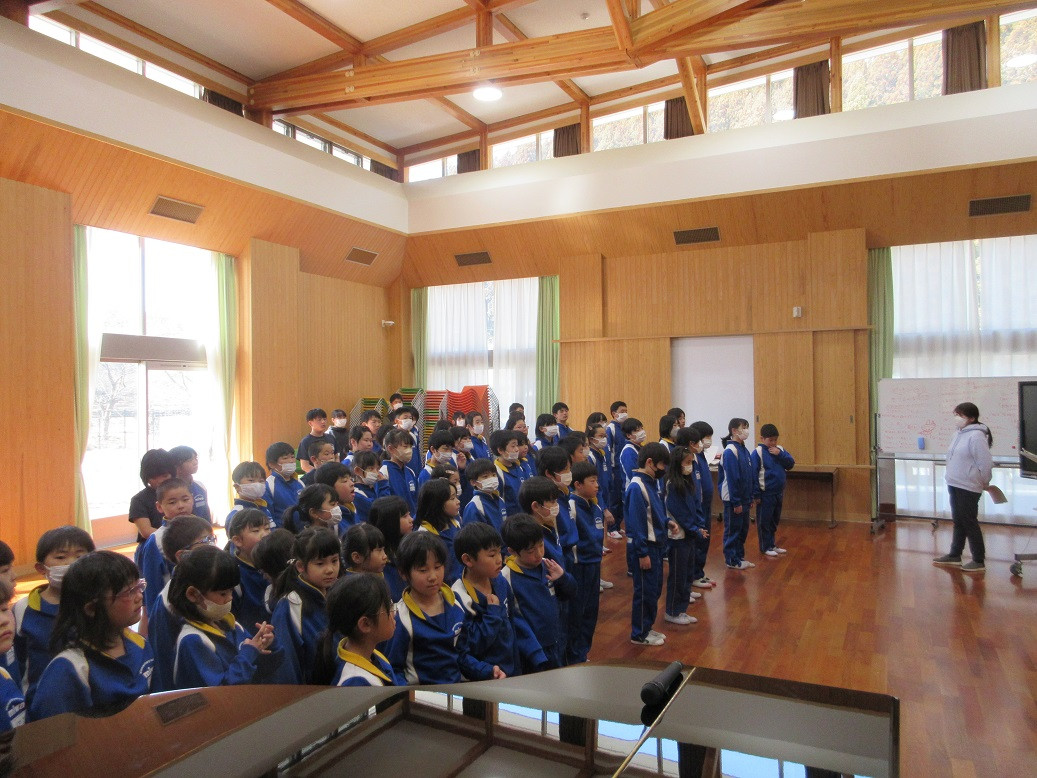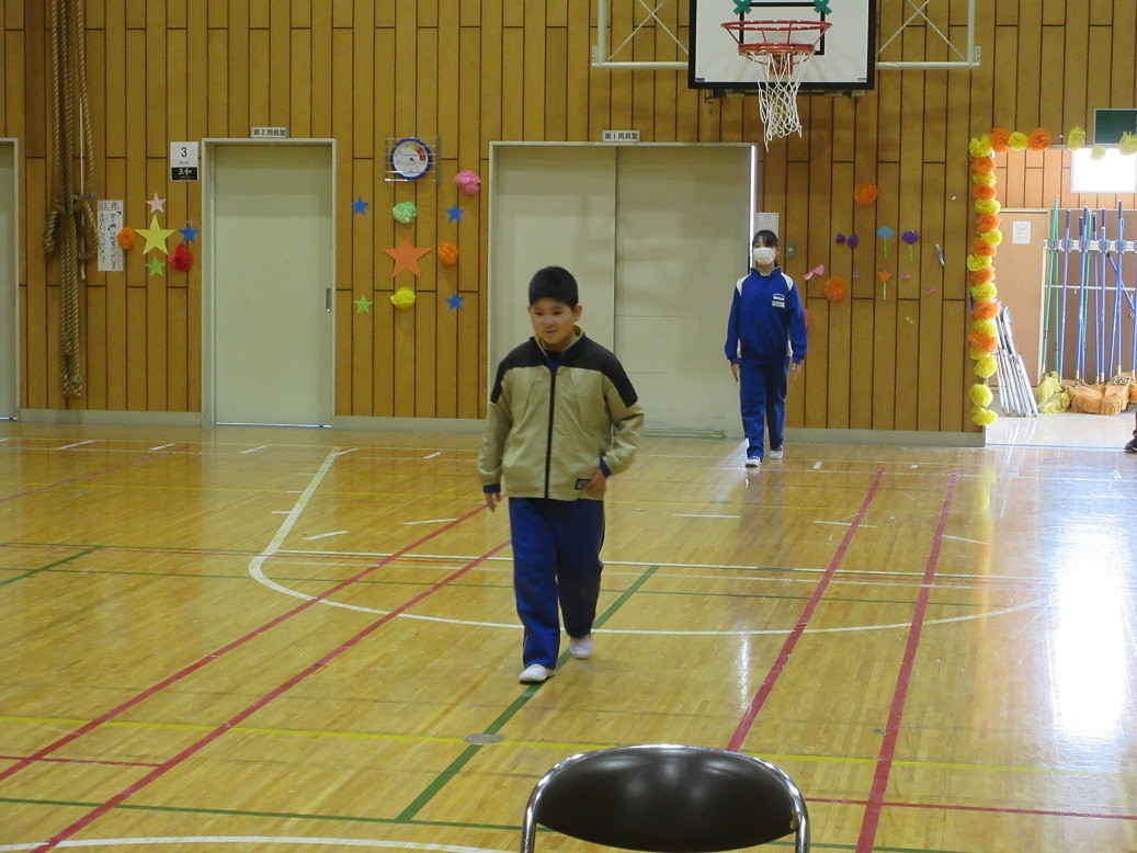2年生は音楽の授業です。リズムに合わせて動きながらじゃんけんトレインを行っています。