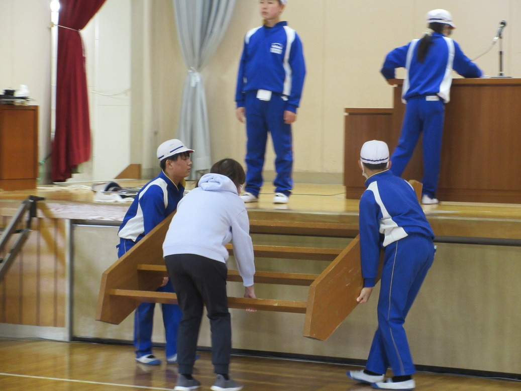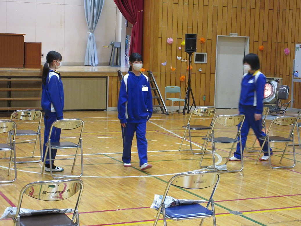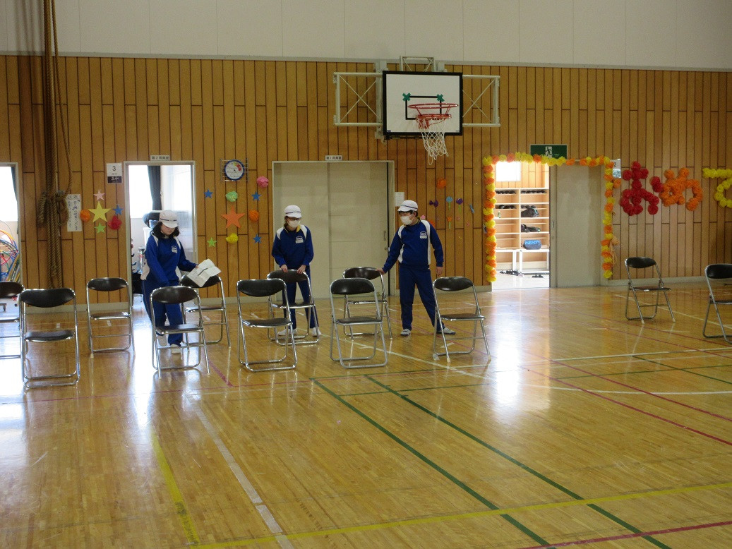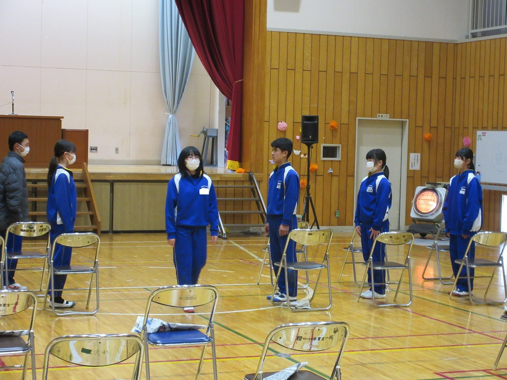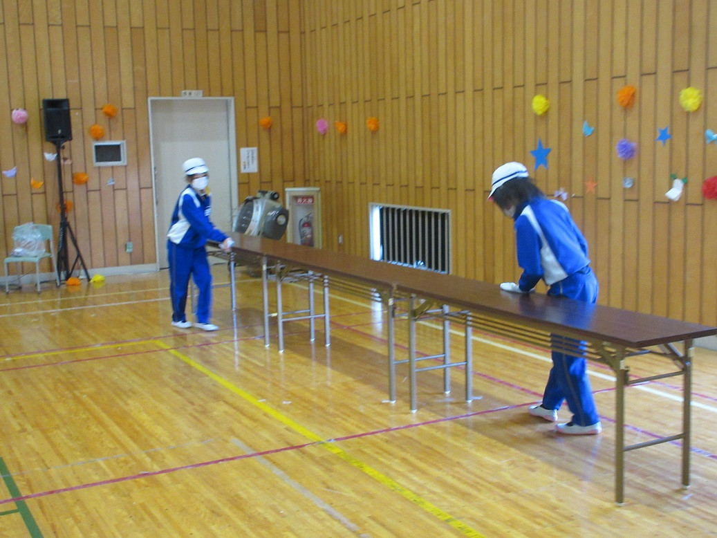 2年生は音楽の授業です。リズムに合わせて動きながらじゃんけんトレインを行っています。