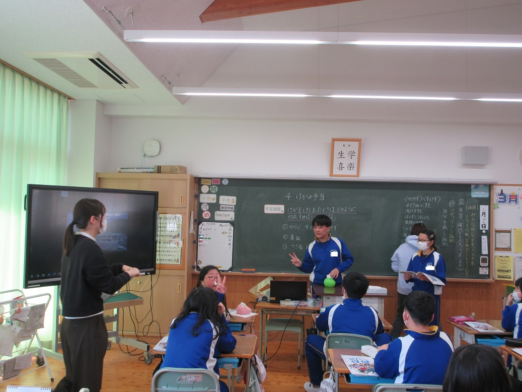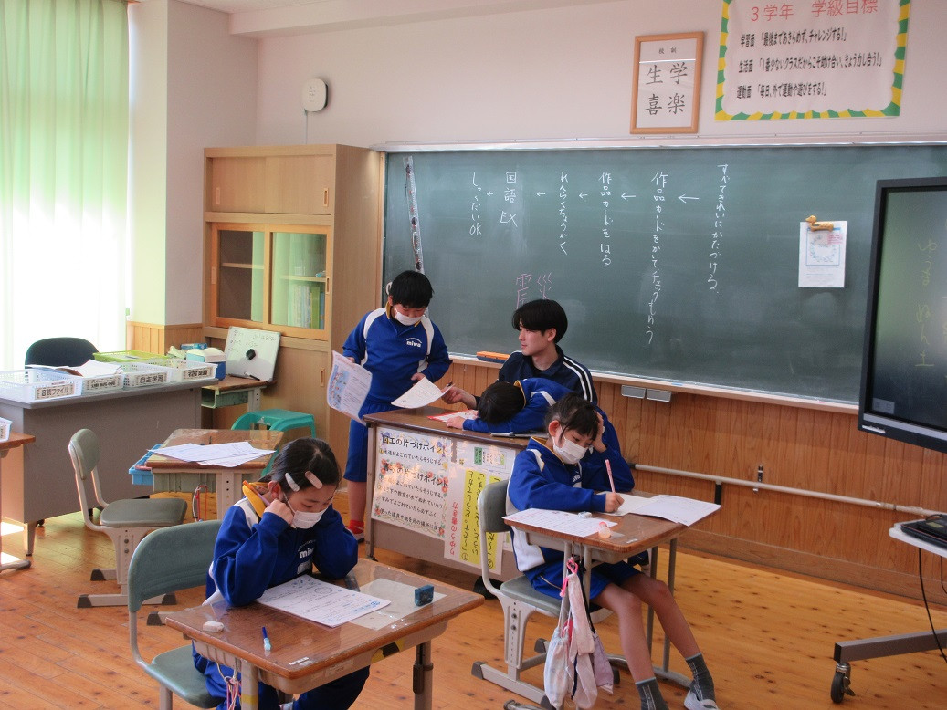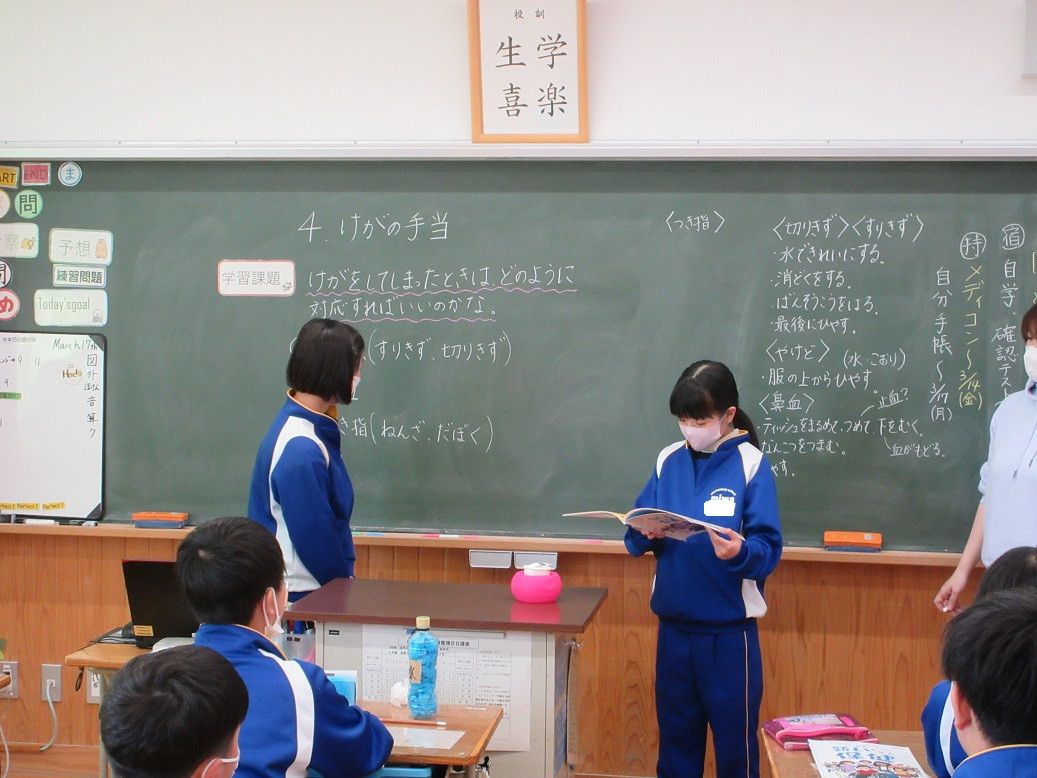 1年生は国語の授業です。「くじらぐも」を題材に物語の様子を読み取り、グループで音読を行いました。どのグループも上手に音読できていましたね!