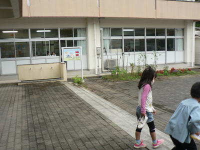 幼稚園に帰る子どもたちに、遠くから声をかける1年生。
