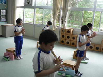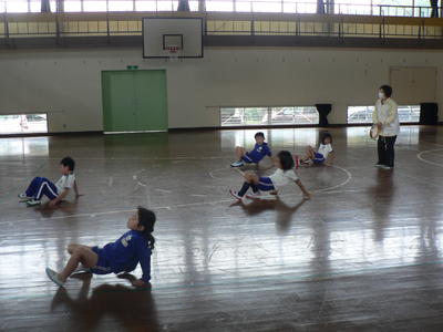 一年生のこの動きは、福島県教育委員会が提唱している、「運動身体づくりプログラム」の1つです。体育の授業の中に毎回位置づけて、体力向上に取り組んでいます。